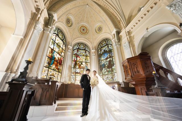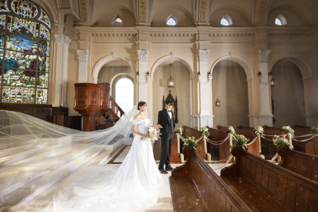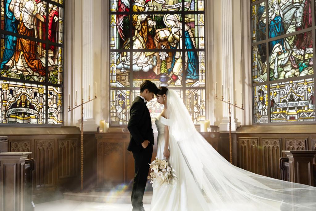 ステンドグラス輝く大聖堂と自然あふれる1800坪の本格洋館でのプライベート撮影。スタジオでは撮影しきれない上質で優雅なロケーションフォト。