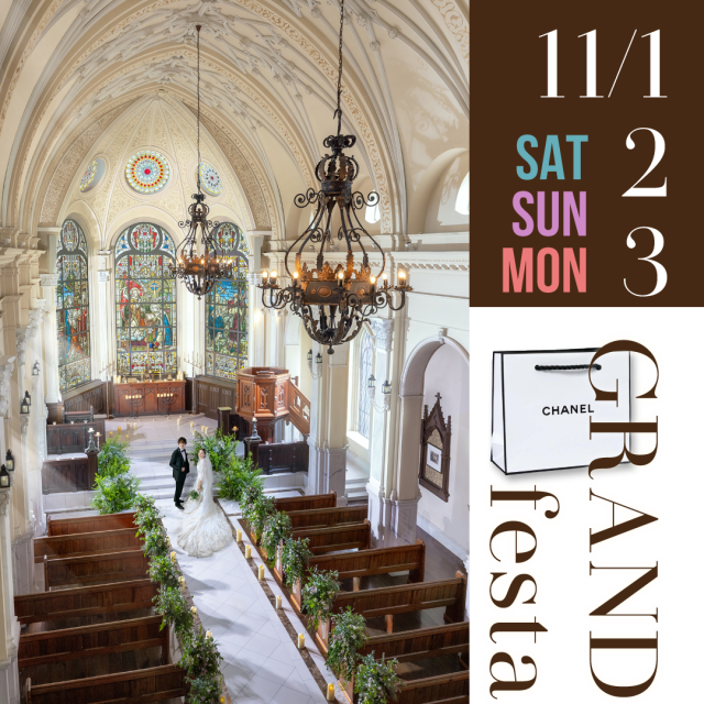 静岡9年連続No.1の会場を見学! みごと三冠達成! ◆ 年に1度の総合祭典!◆ CHANEL(シャネル)の コスメグッズプレゼント! ※様々なWEBサイトがありますが公式HPからのフェア予約が 1番お得で充実した内容となっております。 ◆ 大聖堂GRANDリニューアル誕生◆ 早くも話題に! 息を飲む美しさを体験! さらに! 【注目!】アンティーク会場もチェック! あの美しいNEW大聖堂での模擬